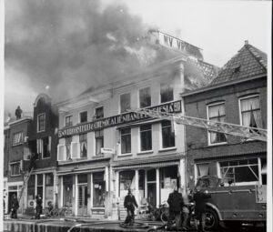 Eén film uit de collectie Vriesia is compleet anders van sfeer en karakter. Geen zorgeloze familietafereeltje dit keer, maar een nieuwsreportage in een tijd dat beelden van een flinke brand in Alkmaar het NTS-Journaal niet haalden. Op 7 mei 1960 registreerde iemand van Flandria negen minuten lang de uitslaande brand aan het Luttik Oudorp die het pand van Vriesia in de as legde. Op een dag na is dat 15 jaar na de vrolijke beelden van de intocht van de Canadese bevrijders. Er is geen houden aan voor de Alkmaarse brandweer. Het pand brandt volledig uit en wordt later dat jaar gesloopt.