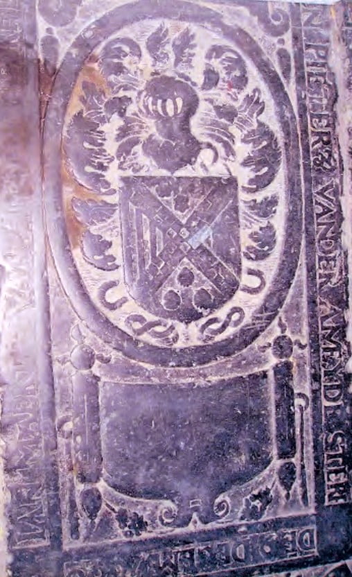 Het lijkt nu een hele sprong naar de grafsteen van Van der Meij. Maar schijn bedriegt. Maerten Pietersz van der Meij is één van de grote helden van Alkmaars Victorie. U kent het verhaal van de brieven, die hij in zijn polsstok meesmokkelde om aan Sonoy te vragen de sluizen te openen. Opdat de Spanjaarden letterlijk zouden afdruipen. Voor alle details verwijs ik u graag naar hvalkmaar.nl. Laat het hier genoeg zijn, dat hij zijn leven waagde voor de stad en de gemeenschap. Terecht, dat zijn standbeeld naast de Grote Kerk staat. Zijn monumentale grafzerk is bij de laatste herinrichting van de kerk verdwenen in een opslaghoek achter een scherm. Niet meer te zien. Pijnlijk en slordig. Het stadsbestuur meent dat de oplossing is, dat de zoekende toerist desgevraagd wel even in het rommelhok mag kijken. Onze oplossing zou zijn: verplaats die zerk een paar meter en maak onze dierbare Van-der-Meij-geschiedenis weer zichtbaar. Je kunt je schouders ophalen en denken: dat zoeken die toeristen dan maar op. Op Wikipedia. Want met die gemakzucht voeden we toch ook onze kinderen op? Of toch maar beter: ‘ga zelf maar kijken’. Lijkt ons wel!